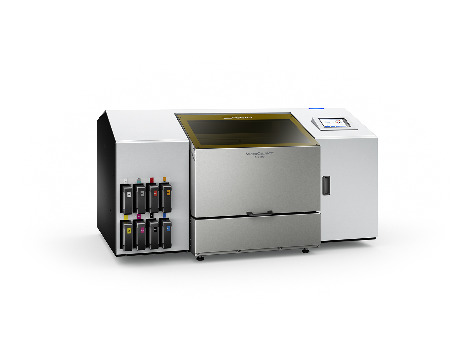 Roland VersaOBJECT MO-180 är en kompakt och kraftfull UV-flatbed-skrivare designad för att skräddarsy en rad objekt, perfekt för småföretag och kreativa projekt. Med en utskriftsyta på 458 mm × 305 mm och kapacitet för objekt upp till 204 mm höga är den idealisk för anpassning av gåvor och personliga föremål.